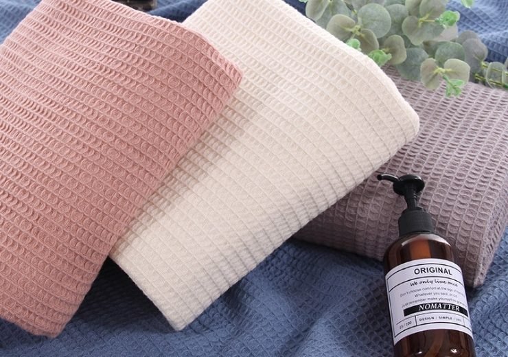 100% cotton waffle material, salmon pink,cream, light brown,blue color available, fitted for summer and tropical weather area